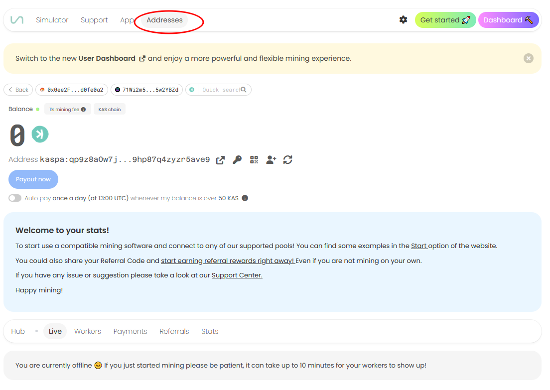 The wallet address in "Accounts" is used for MinerBox account configuration and setup.