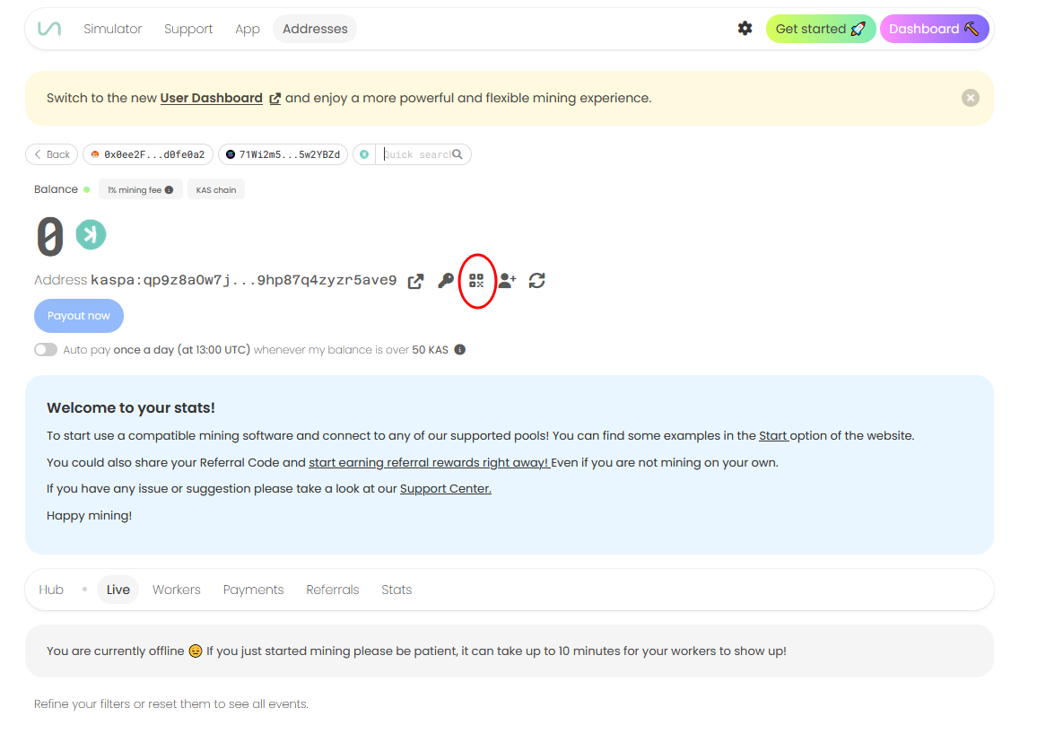 For simplifiying address insertion and transfer the QR codes mechanizm are implemented.